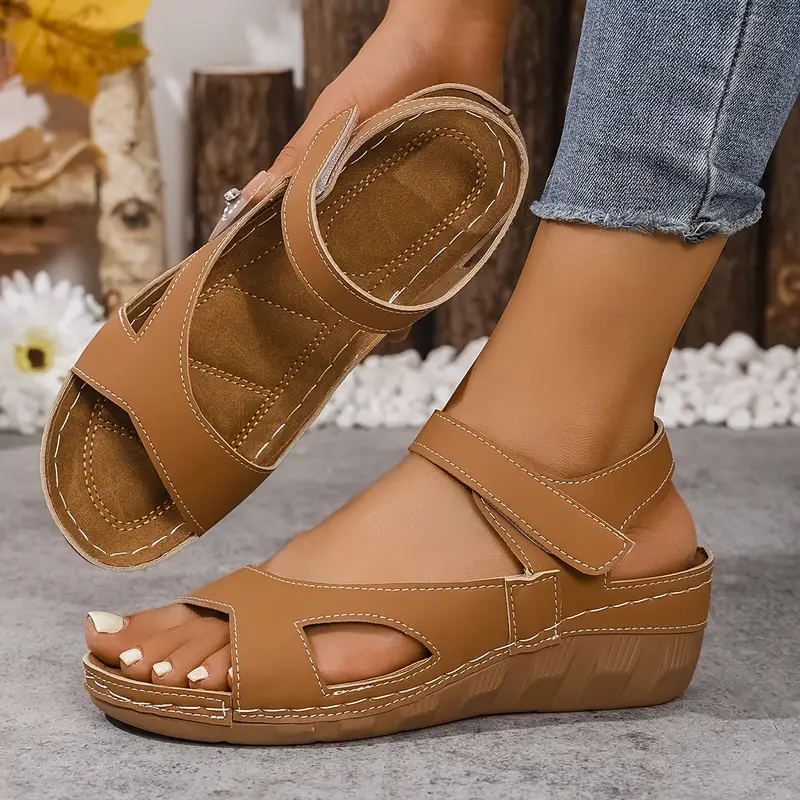 The cushion-like, double-padded memory foam insole is very soft. And the sandal is easy to combine.